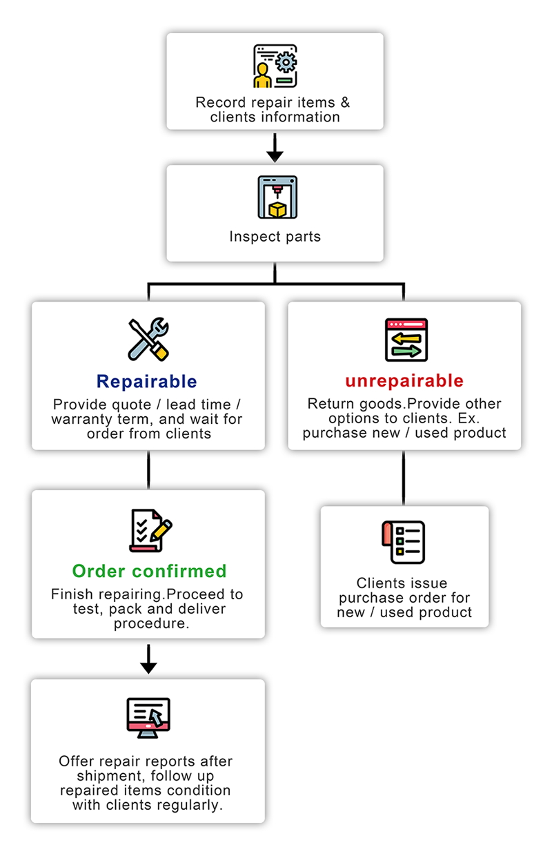 Shin-Yuang adopt standard operating procedure, sort order by date and repair them sequentially, let enhance our service and quality.